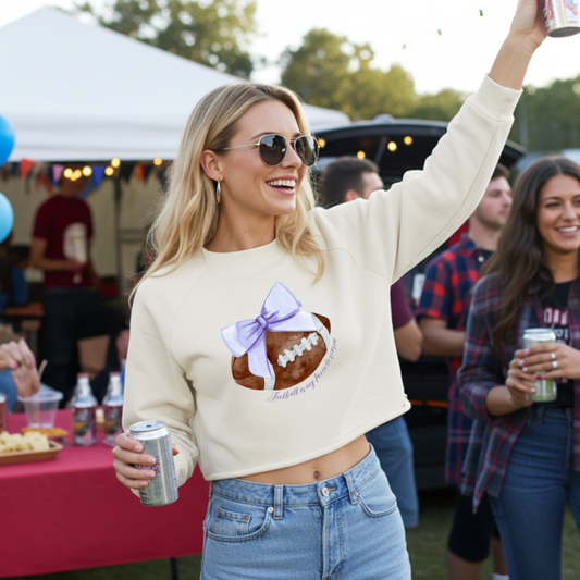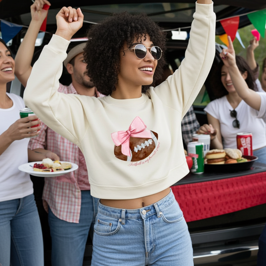 Football Season Burnt Orange Bow Cropped Sweatshirt
