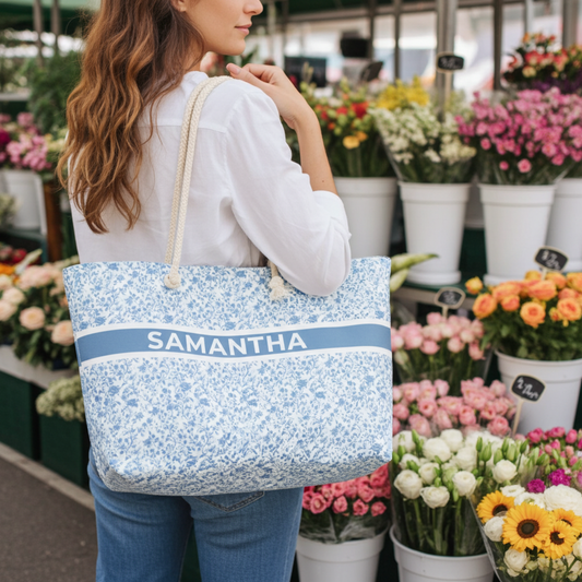 Heirloom Collection Blue Toile Personalized Oversized Weekender Bag