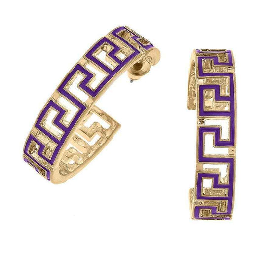 Game Day Greek Keys Enamel Hoop Earrings (multiple colors)