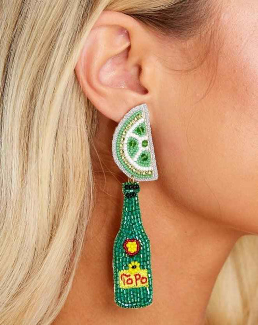 Beaded Topo Chico Earrings in Lime