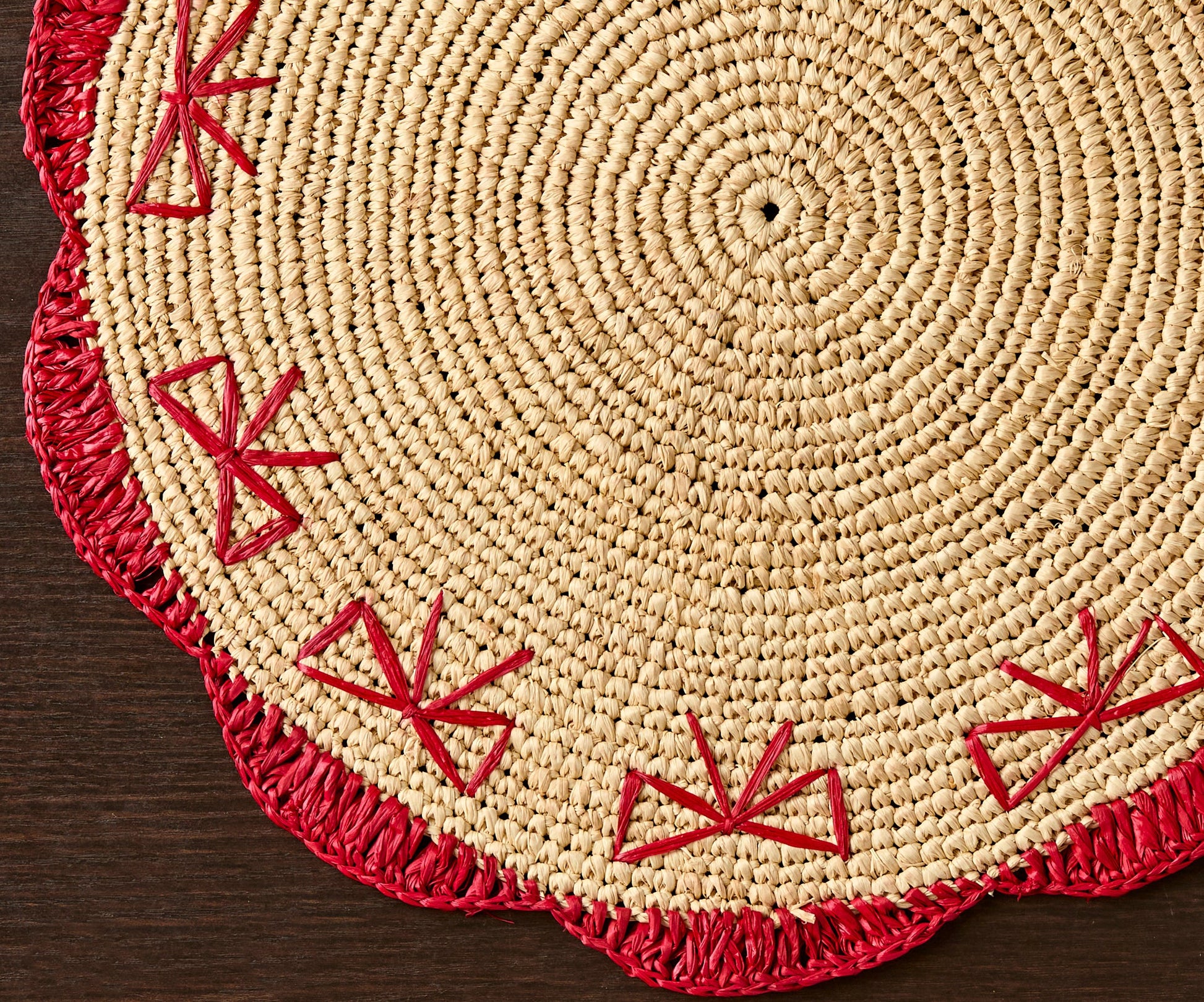 Payton James Handwoven Bow Placemats – Hand-Crocheted Raffia Palm Placemats – Unique Kitchen & Dining Table Decor – Handmade Tableware